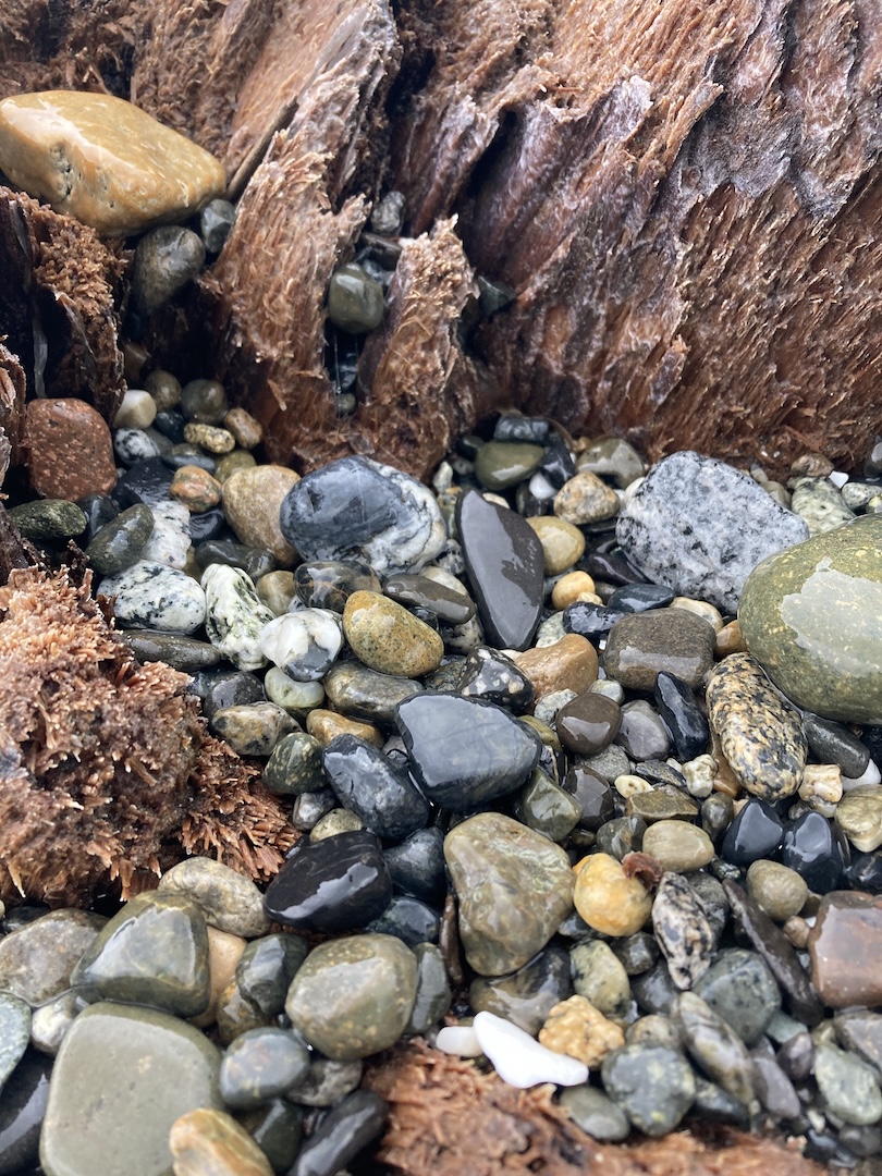 Driftwood on a rocky beach. photo by Gunnison Langey