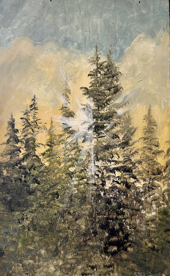 Justin Johnson is a self-taught, North Bend, Washington-based artist. A longtime Northwest outdoorsman, he is an avid backpacker, camper, trail runner, and general enjoyer of the wild outdoors. He found a passion for oil painting in his 20s, and he is now refining his skill to tell stories through the animal experience. His work is a celebration of the wild places and animals visited in wanderings over the years. Each piece aims to tell a story of the animals in a specific moment or inspiration. Each oil painting begins long before the brush touches canvas, as each wood panel and frame set are handcrafted by the artist — a skill learned working side jobs in trades as a younger man.