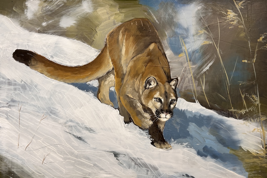 The move to capture wild moments is sparked by a formative family trip that opened my eyes to the beauty and importance of our wild spaces. Through paint, I hope to honor these animals and the lands that complete their ecosystems and all the participants of our greater story together.