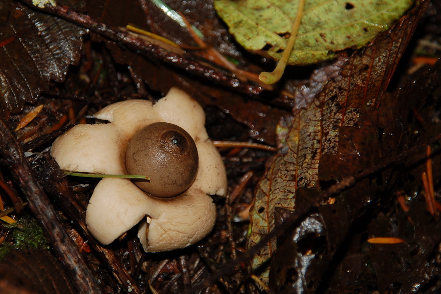 Here are some photos that had that instant “look twice” quality, suggesting mini-stories such as a mushroom bursting out of it’s clothes, and a stick figure clothed by a lacy leaf. The luminescence of the slug skin lit by the flash suggested science fiction to me, and a fir needle floating in a puddle in a mushroom is just waiting to have a poem written about it.