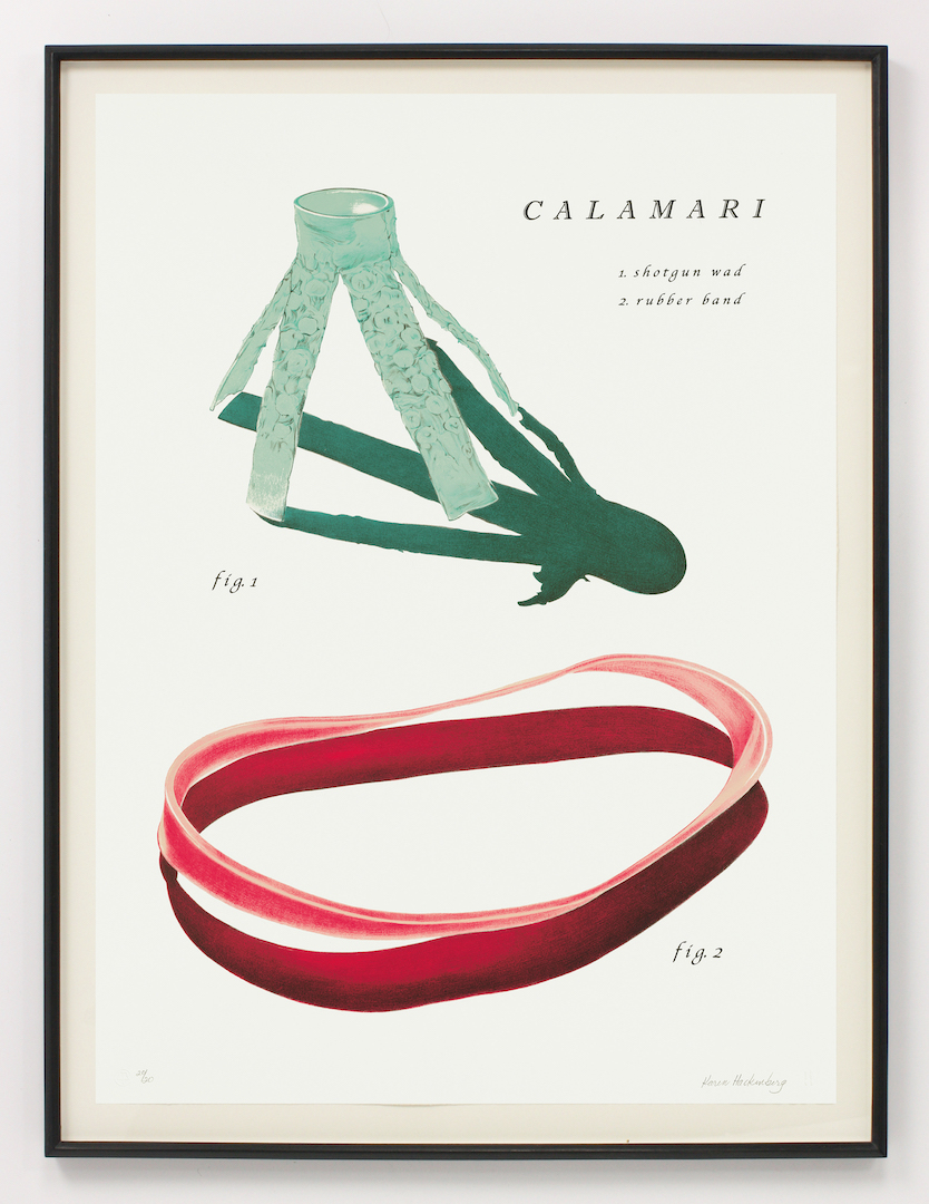 My original, hand-drawn, lithograph prints of the Frutti di Mare Suite, titled Calamari and Baby Squids, depict marine debris and mimic the pages of a naturalist’s notebook or antique encyclopedia of edible sea life, using wryly-subversive identifying text in the style of letterpress impressions of the 1800s.