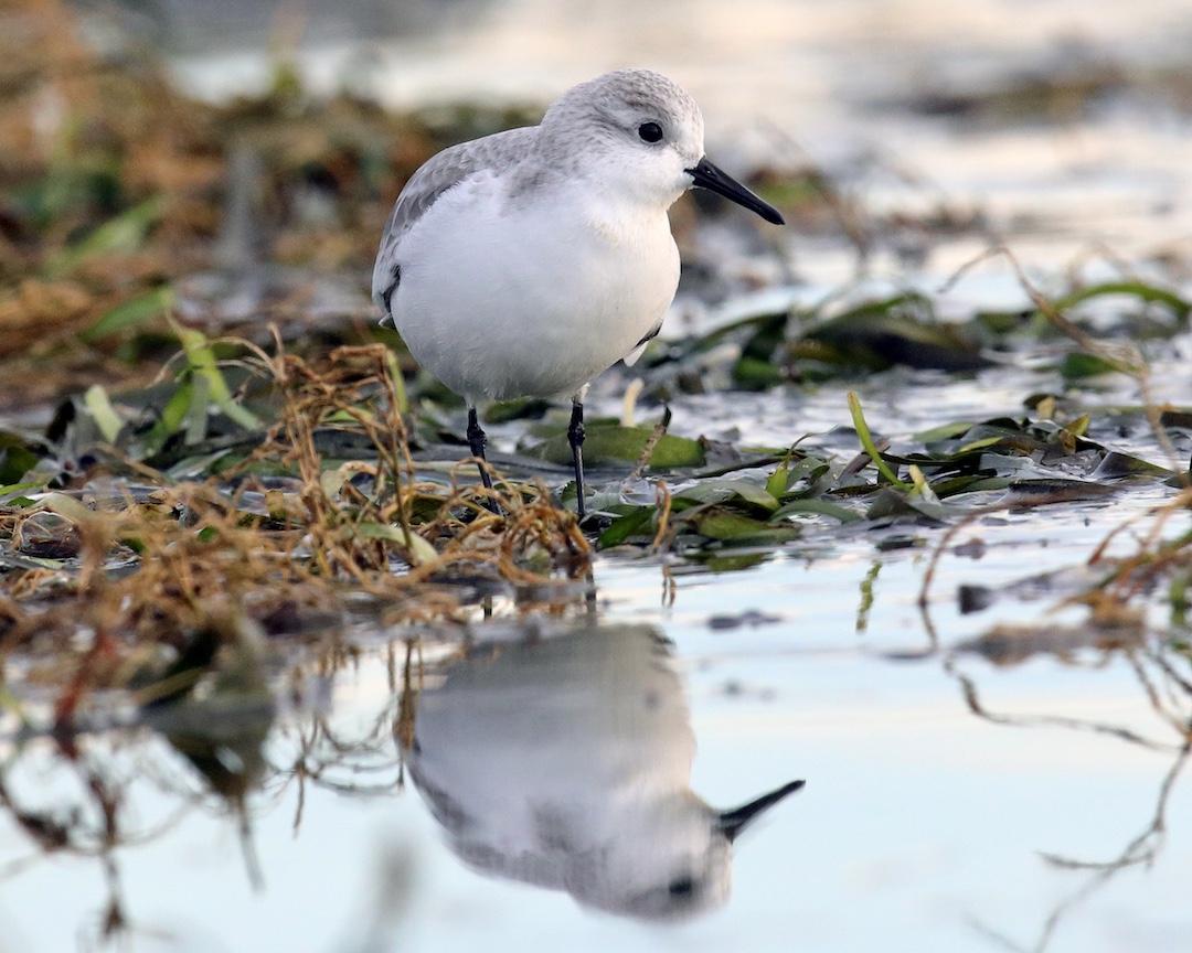 In Winter, Sanderlings stop on their journey south to fatten up. Look for them feeding on small invertebrates along the shore in small to medium flocks.