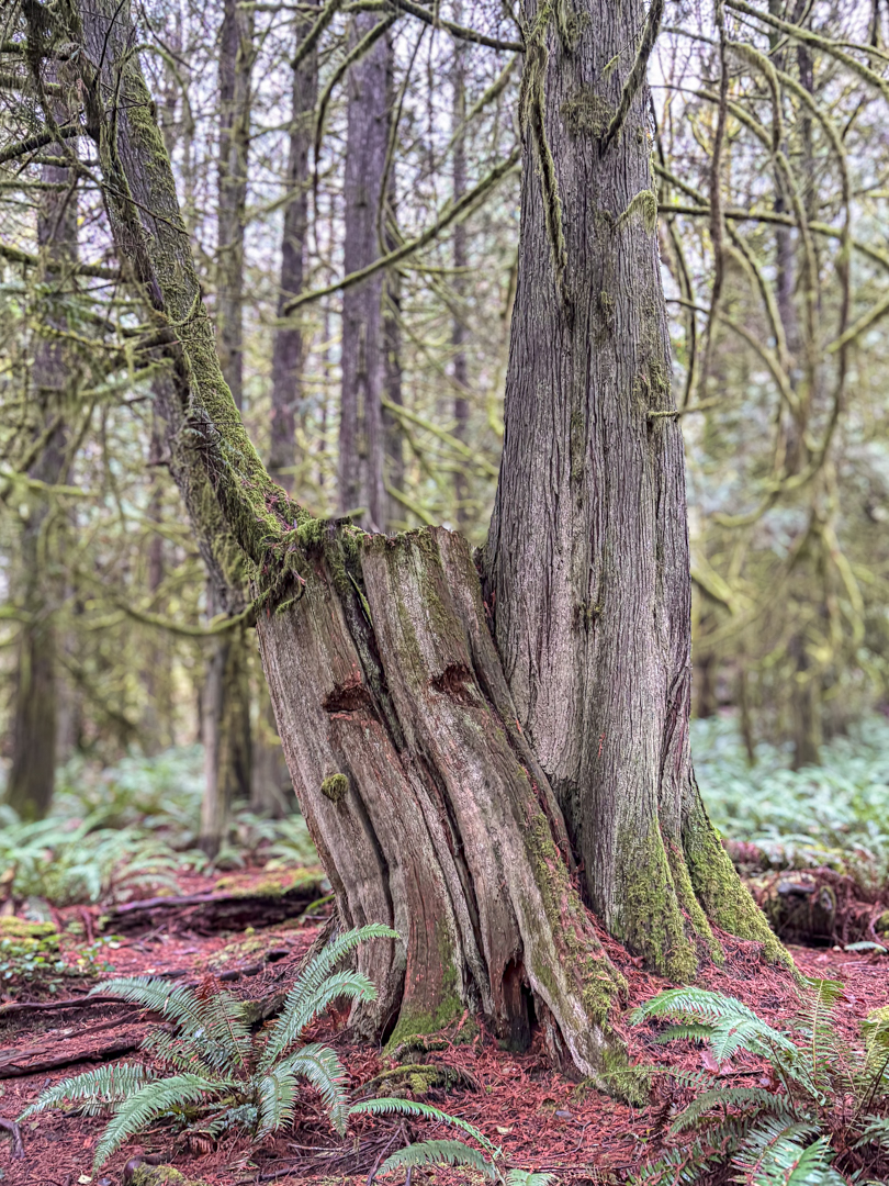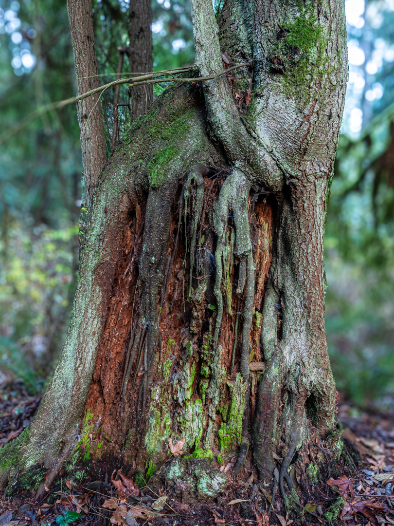 This tree found a way to stay straight as the stump it was growing on began to decay. Now, it’s a confusing combination of pieces.