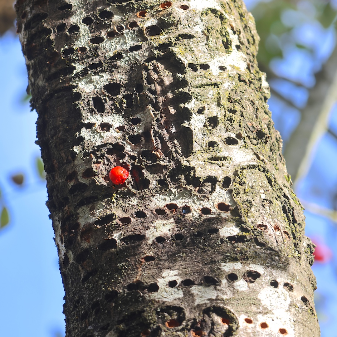 Berry cached in sap well in tree. photo by Thomas Noland