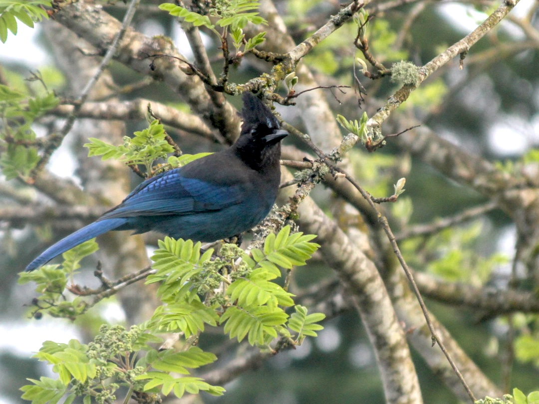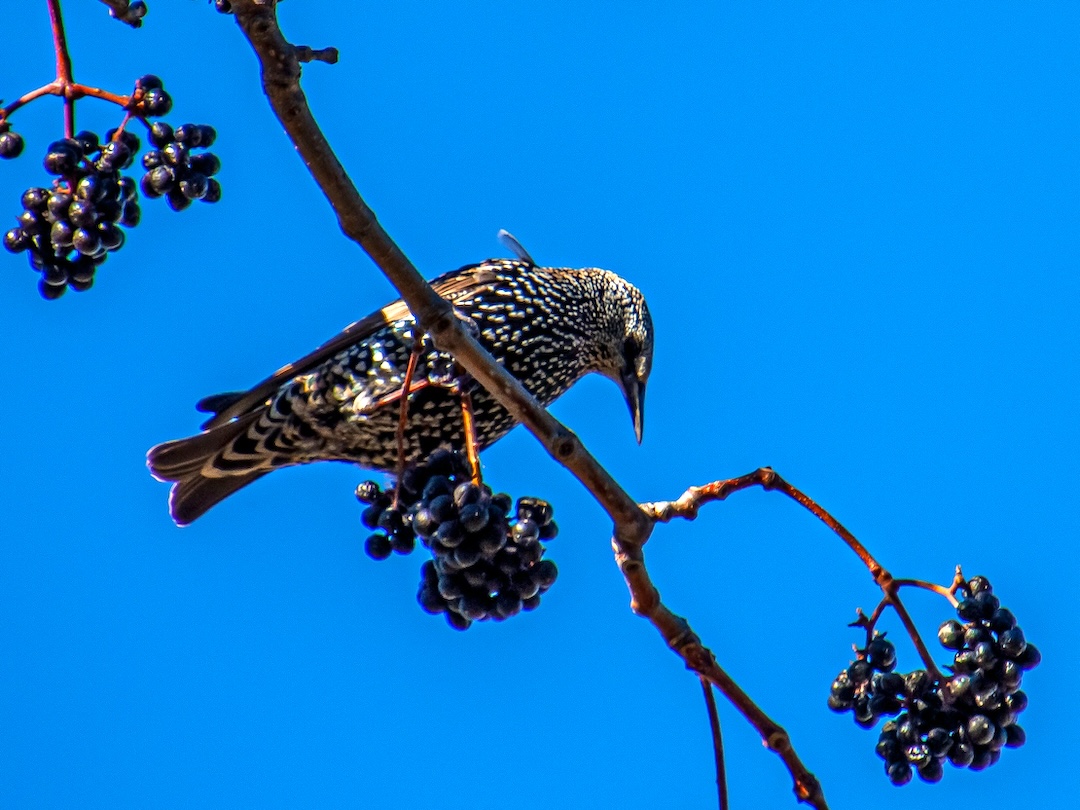 Winter is time for us to enjoy watching the berry gulpers — birds with mouths large enough to swallow mountain ash berries whole. Sometimes a dozen or more American robins descend on the bare branches to devour the wrinkled fruit — whether the birds are sustaining themselves through the winter here or fueling up for migration, only the robins know. Varied thrushes are a sure sign of winter when they move down from the mountains to hang out in neighborhood parks, gardens, and backyards. Other berry gulpers that sometimes join the feast include European starlings, Steller’s jays, and northern flickers.