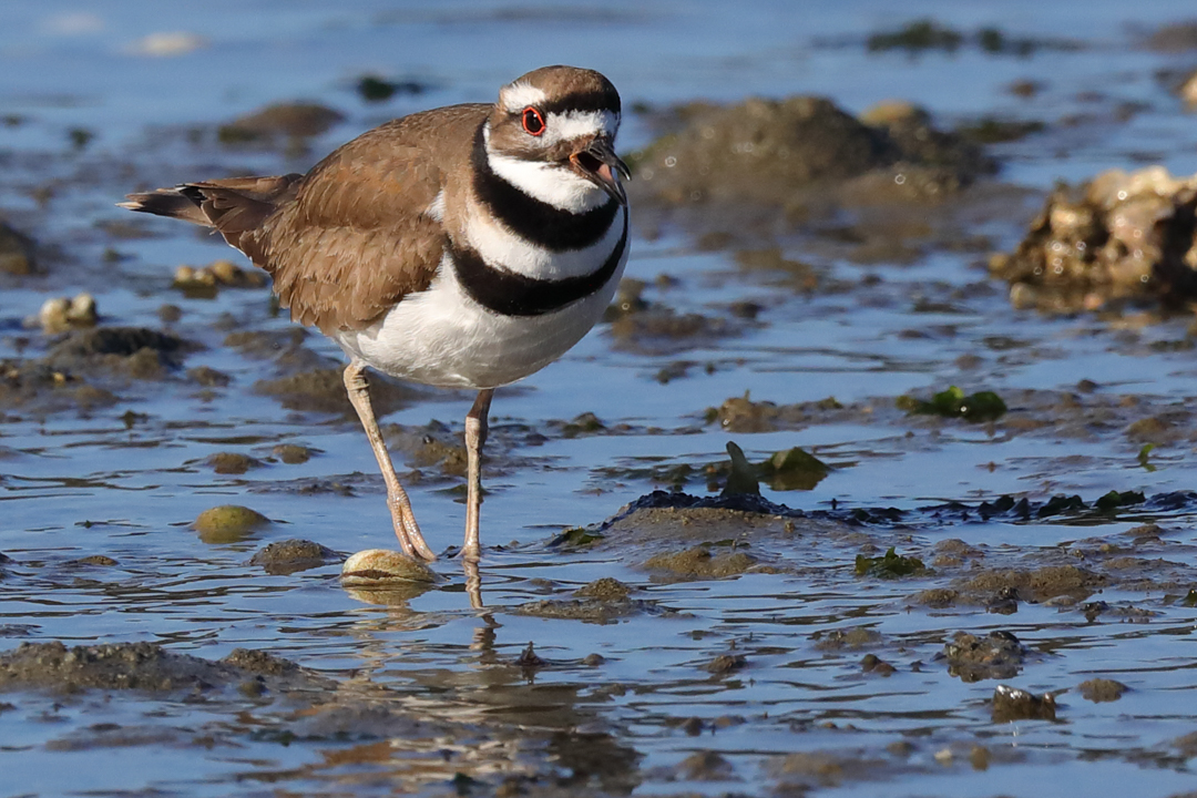 I found that as I walked closer to the top edge of the beach, killdeer began to run around the beach, calling and trying to coax me away from the high-tide line where their nests were. But their coloring was a good camouflage — I could hear them, but it wasn’t easy to spot them.
