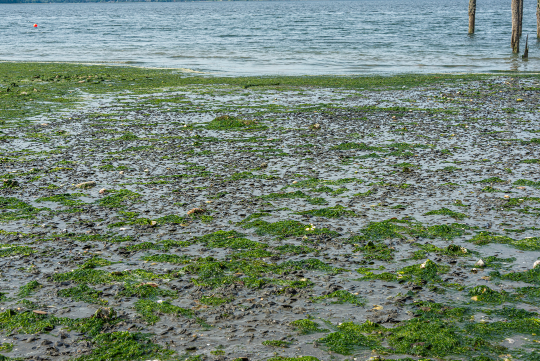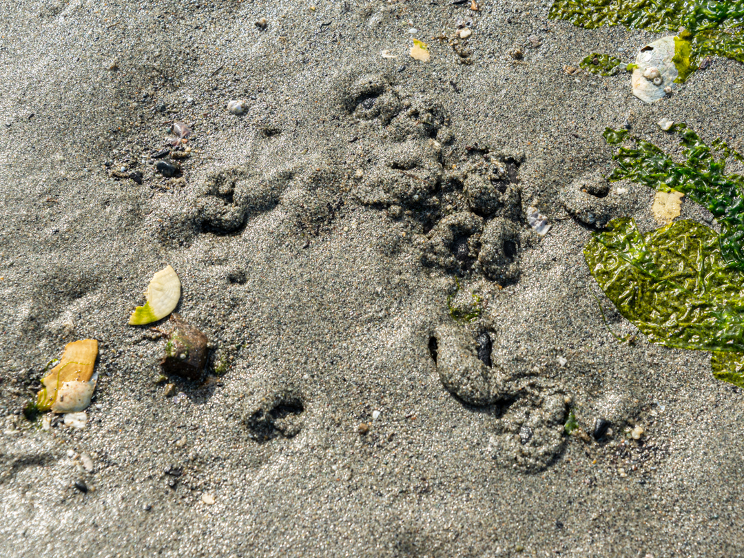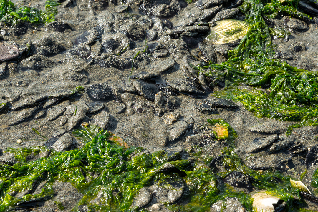 And some of the beach areas didn’t have those disturbances made by sand dollars, but they had lots of small rocks, shells, and sea lettuce to provide texture and color.