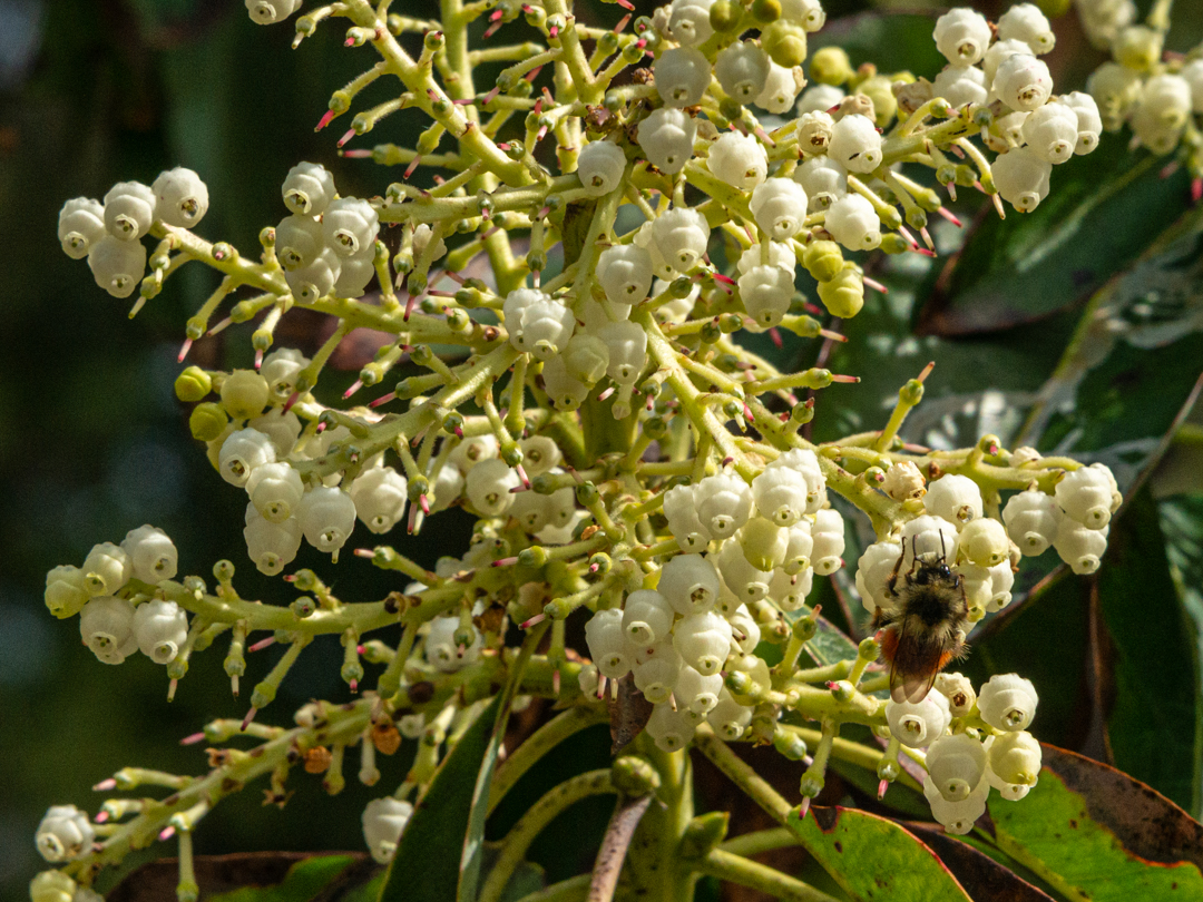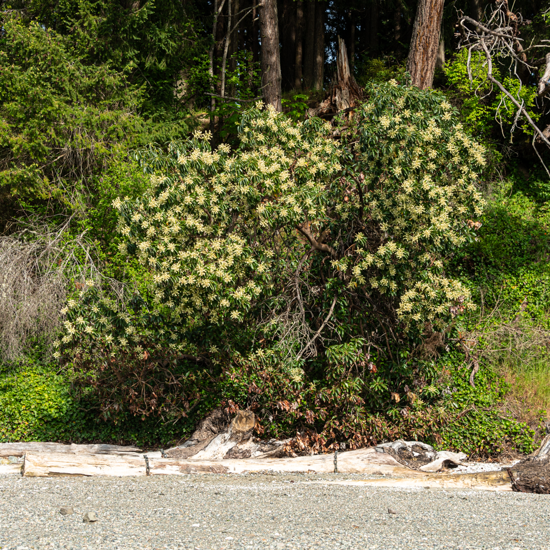 Then, as I returned to the park, I saw evidence of another old friend. These tiny flowers in the beach wrack made me look up to see a flowering madrone tree.