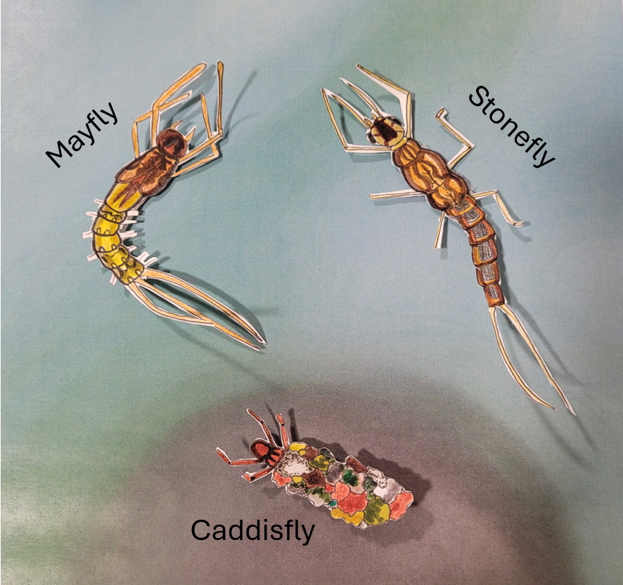 These tiny insects are called benthic macroinvertebrates, and they live within the sediment at the bottom of streams or underneath rocks. They may be hard to see, but they play an outsized role in their environment. Macroinvertebrates are biological indicators, which means their presence in the water can give hints about the health of the stream. When assessing stream health, scientists break macroinvertebrates into three different classes: sensitive to pollution, somewhat pollution-tolerant, and highly tolerant.