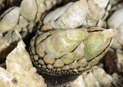 Once attached to a surface the barnacle begins to build its shell. The surrounding shell is composed of six calcium plates, plus there are two to four plates that act as doors. During low tides or when threatened they are able to close those doors creating a nearly impenetrable fortress. Over time they do grow and add to those plates as they expand in size.
