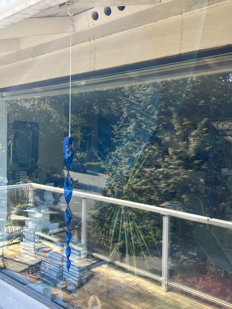The towhee didn’t lawyer up. He died. And I buried him under the shrubs. In an effort to not have this happen again, I hung a wind chime outside that window. I also placed some petunias in a hanging pot, and I hung one of those curlicue things that corkscrew in the breeze by other windows. Since then, only one bird has crashed into my front window. But I know that every year, a billion birds will fly into other windows and die. And as a bird-watcher, that makes me sad.